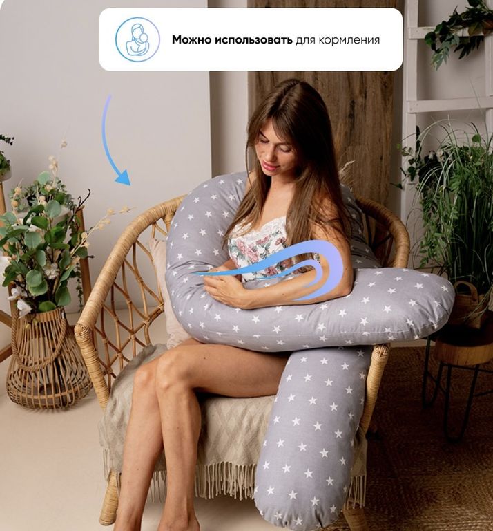 U подушка для беременных уже с первых месяцев беременности подушка станет незаменимой. Своей формой она напоминает подкову, а еще надежное гнездо, поэтому при повороте во время сна, можно не переживать что она съедет вбок.