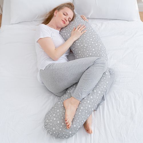 С-образная форма подушки спроектирована так, чтобы огибать ваше тело, благодаря чему вы можете обнимать подушку, разместить на нее все тело, особенно живот.