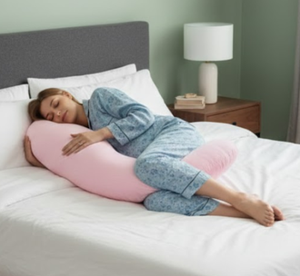 В комплект к подушке входит наволочка на удобной молнии, сатин розовый страйп.