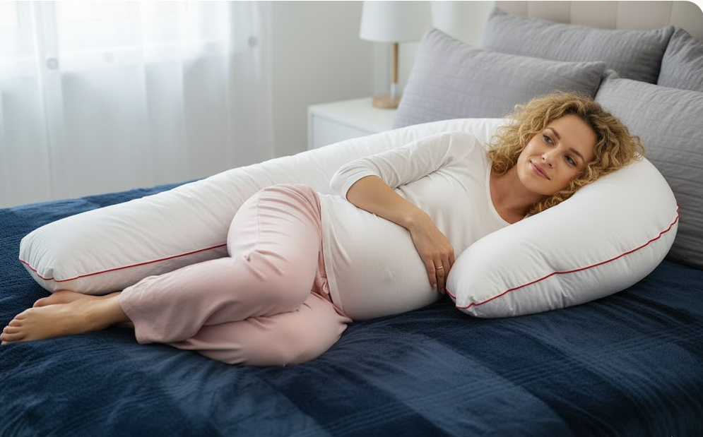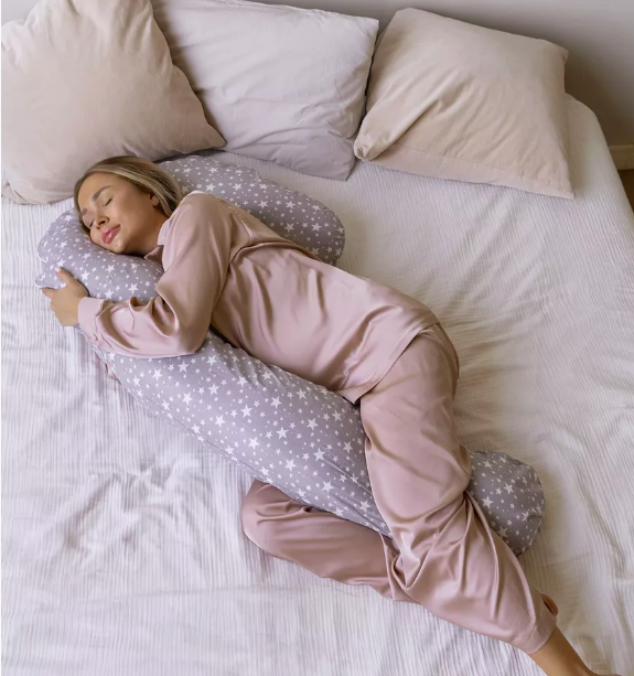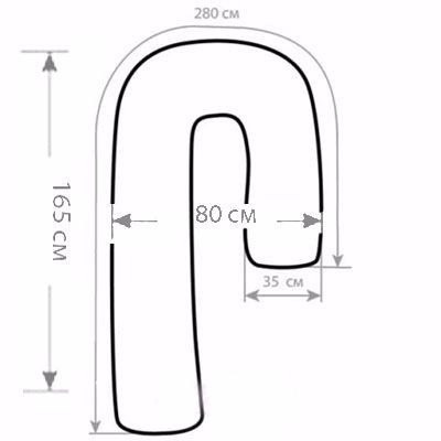 Подушка для беременных J big 280 имеет форму семерки и длину внешнему краю 280 см, ширина конца 35 см, при этом длина по высоте самых крайних точек 165 см.