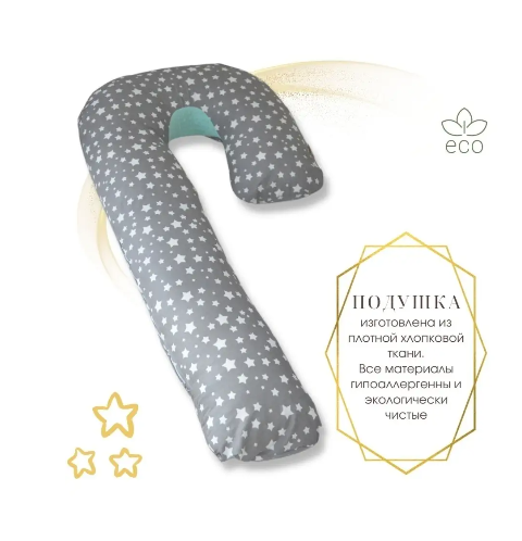 В комплект к подушке идет одна наволочка на молнии, цвет звезды на сером.