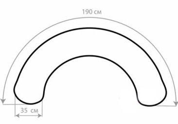 Подушка для тела формы С имеет размер по внешнему краю 190x35 см.
