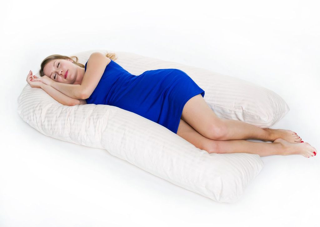 Подушка для беременных формы U с наполнителем искусственный лебяжий пух имеет размер 340 см по всей длине канта, по ширине края подушка 35 см. Наволочка на подушку U на молнии входит в комплект, ткань сатин страйп люкс, цвет на выбор.