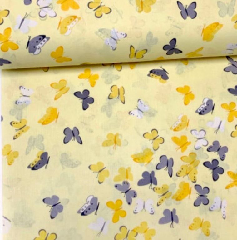 Наволочка на подушку U на длинной молнии входит в комплект, ткань Ранфорс ТУРЦИЯ - Турецкий хлопок, цвет бабочки на желтом