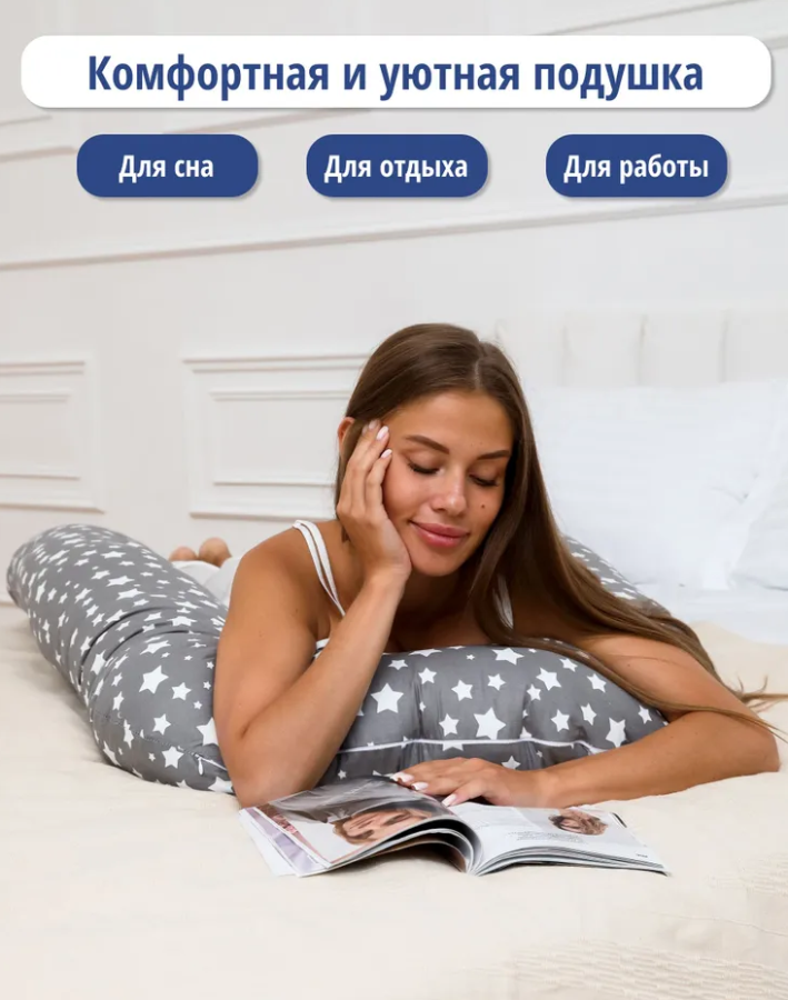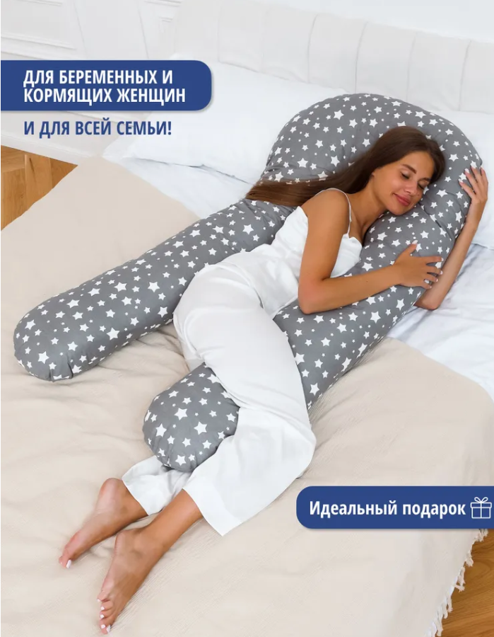 Подушка для беременных в форме U с наполнителем искусственный пух имеет размер 340 см по всей длине канта, по ширине края подушка 35 см. В изголовье подушки встроена молния для регулировки плотности изделия, а также вшита специальная ластовица в области шеи для снятия напряжения. Подушка формы U - по настоящему уютная, уникальная, удобная, удивительная! Наши подушки обнимашки – это настоящее современное качество европейского постельного белья.