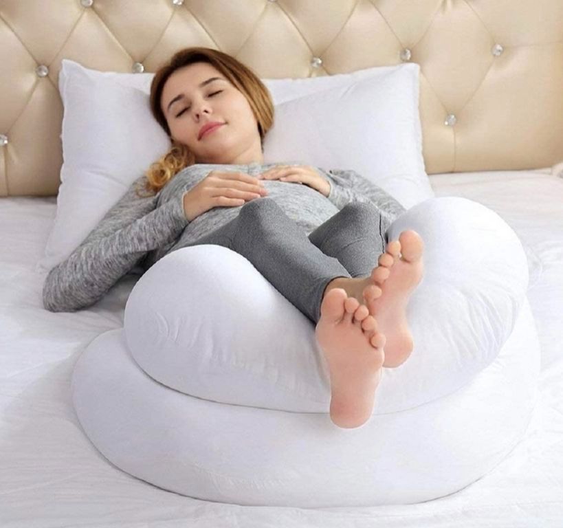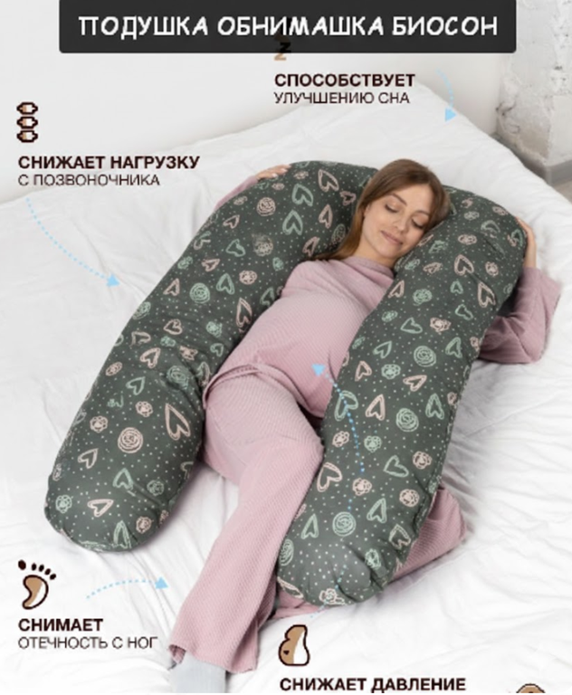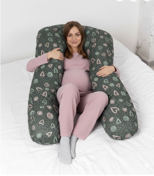 Подушка для беременных формы U с биопухом имеет размер 280 см по всей длине канта, по ширине края подушка 35 см.