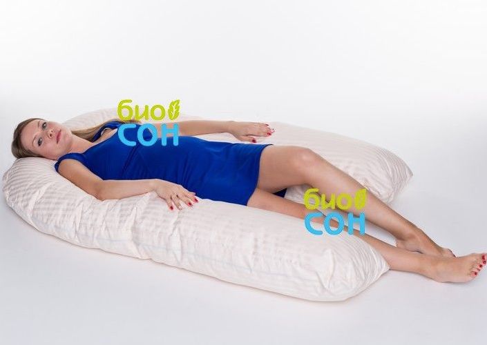 Размер U подушки по внешнему краю: по длине 340 см, по ширине одного края 35 см, по высоте 150 см