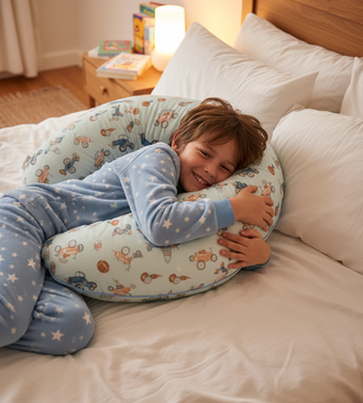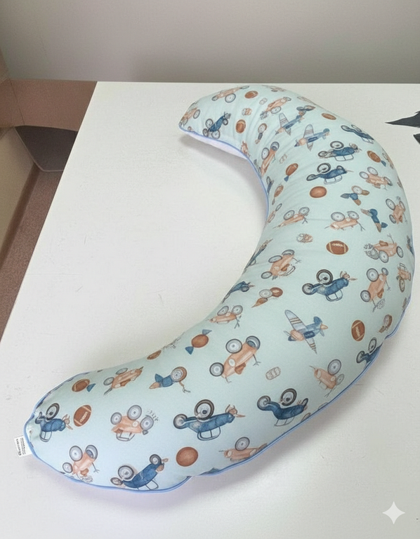 Подушка для детей форма Полумесяц размер С 170 х 30 см с наволочкой на молнии сатин рисунок Машинки отличный подарок вашему ребенку для уютного сна и хорошего настроения. Длинная подушка обнимашка - функциональный аксессуар для комфорта во время сна, бодрствования или путешествий.